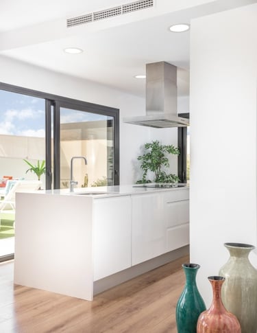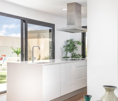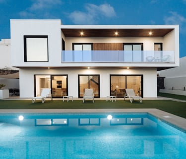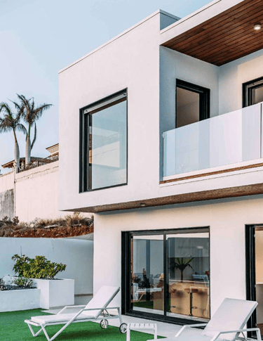 Vivenda de 140m2 en dos plantas. Acabada exteriormente en Sate Blanco y madera.