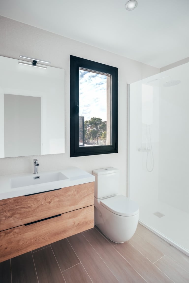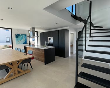 Vivienda de 220 m2 en dos plantas con un diseño exterior moderno que combina el Sate blanco con detalles de madera.